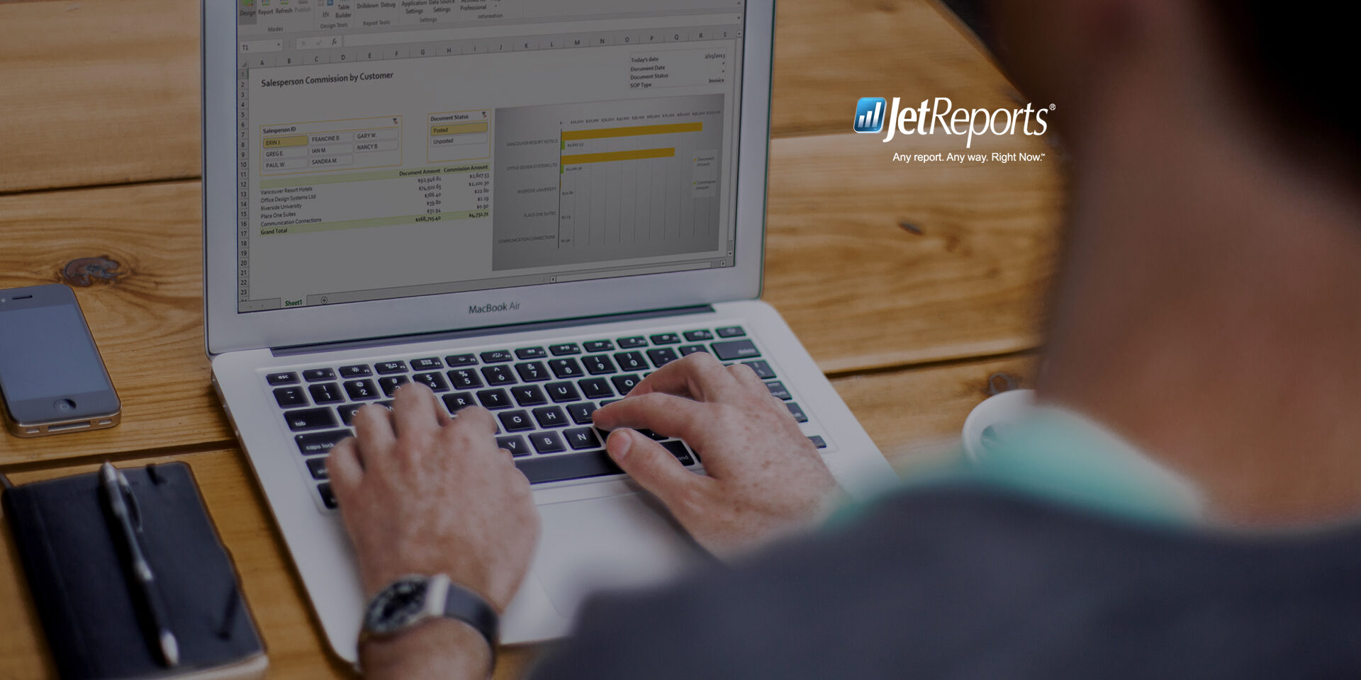 Jet Reports er eitt plug-in til Excel, sum lesur úr Business Central talvunum og leggur upplýsingarnar í Excel. Tá ið tú hevur gjørt eina rapport, kanst tú altíð dagføra hana við nýggjastu tølum úr Business Central við at trýsta á ein knøtt. Tað er lætt at arbeiða víðari við tølunum í Excel.